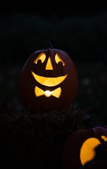 These templates often feature ghosts, bats, witches, and other quintessential Halloween imagery, instantly transforming your pumpkin into a frighteningly festive decoration․ Downloadable PDFs provide easy-to-follow stencils, ensuring a successful and spooky carving experience․ They are perfect for creating a haunted atmosphere and delighting trick-or-treaters!