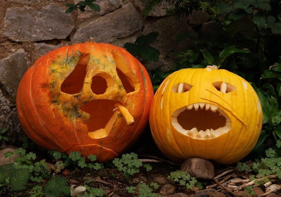 Embrace effortless Halloween creativity! Pumpkin face templates, readily available as free printable PDFs, eliminate the stress of original design․ They’re ideal for those lacking artistic confidence or simply seeking a quicker carving experience․ Templates ensure a clean, professional look, even for beginners, transforming pumpkins into impressive jack-o’-lanterns․